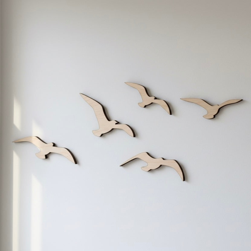 Lehká, vzdušná a poetická dekorace, která vdechne stěně život. Dřevění ptáci z březové překližky působí jemně a přirozeně – skvěle se hodí do ložnice, obýváku i dětského pokoje.