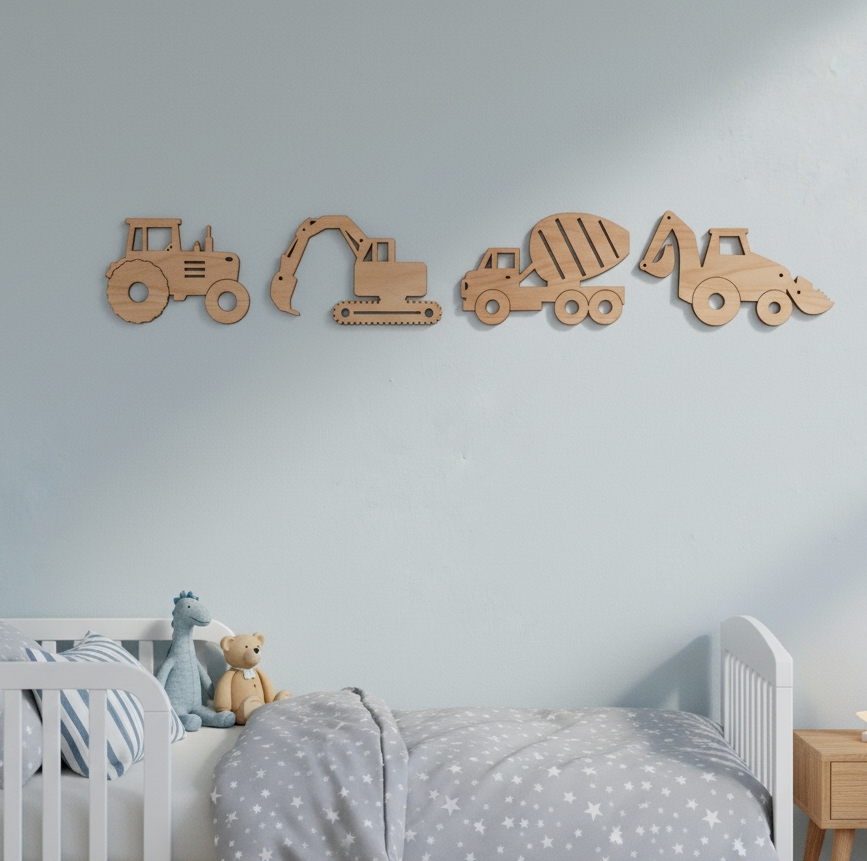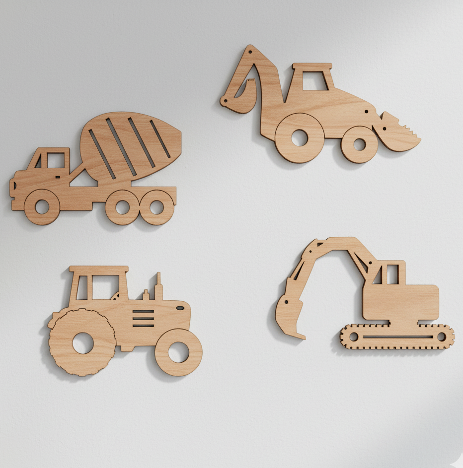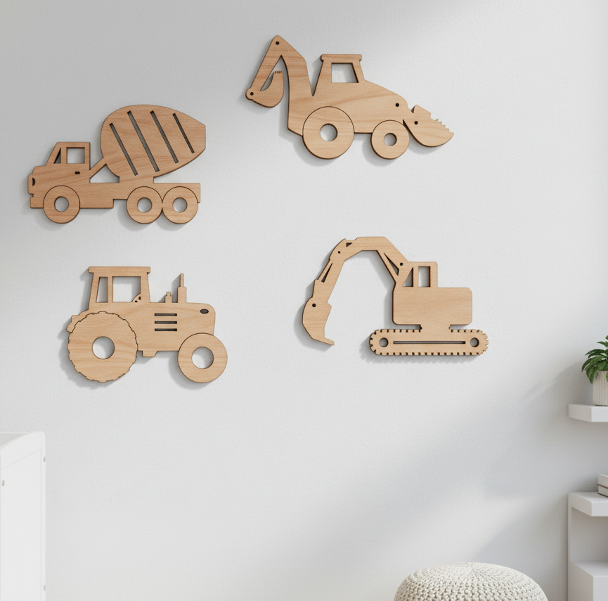 Dřevěná sada STAVEBNÍ STROJE na zeď (4 ks)