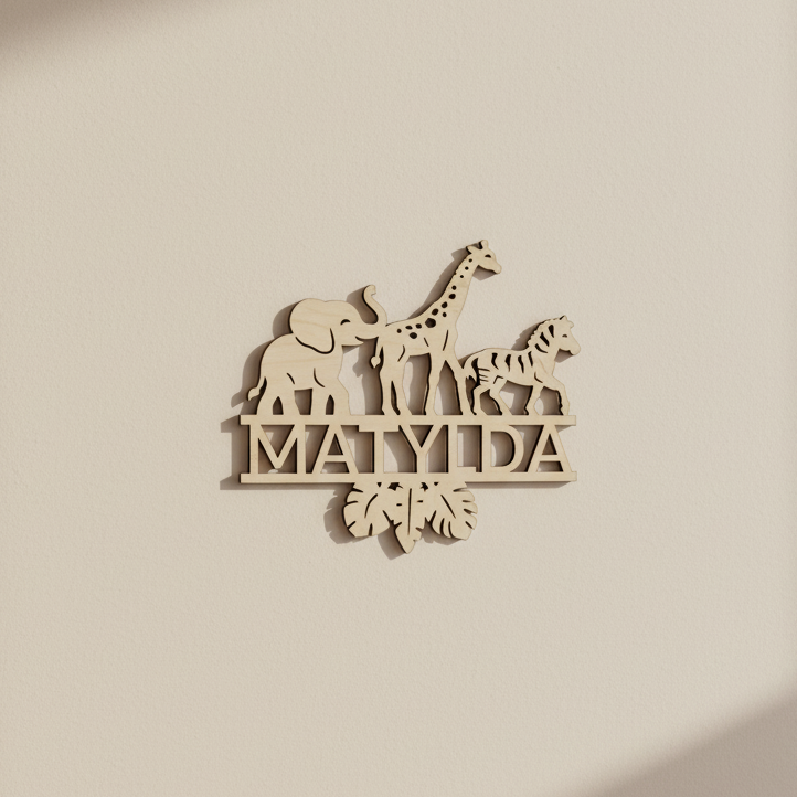 Každé safari zvířátko je pečlivě vyřezáno z březové překližky o tloušťce 3 mm a doplněno o jméno podle vašeho přání. Jméno může být jakkoli dlouhé a poradíme si i s háčky a čárkami.