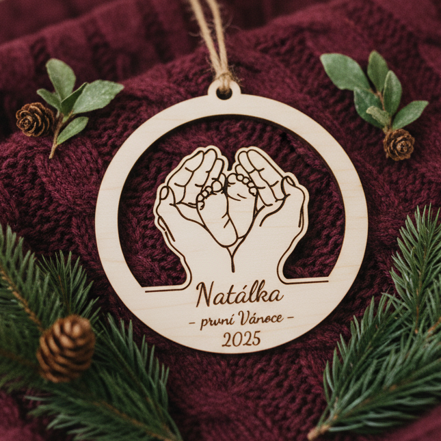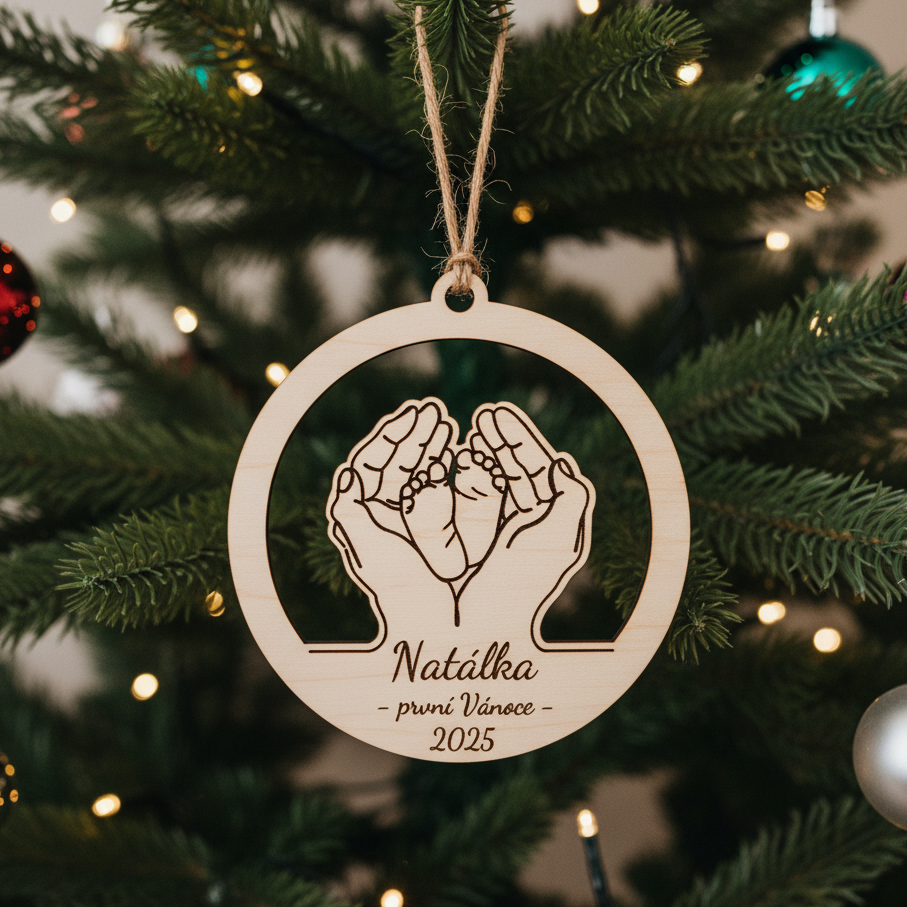 Tahle jemná dřevěná ozdoba zachytí jeden z nejkrásnějších okamžiků – první Vánoce vašeho miminka 🎄