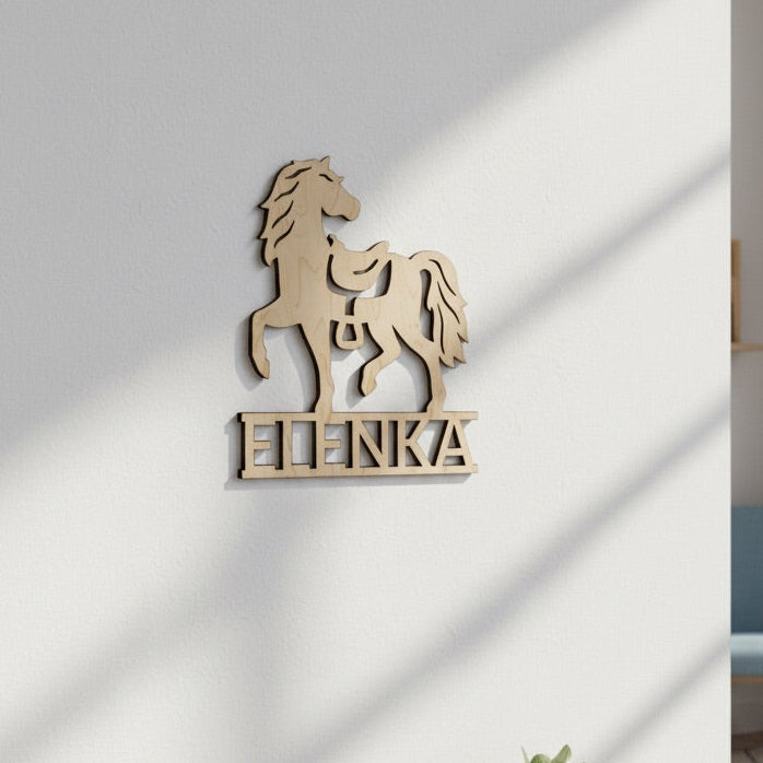 Každý kůň je pečlivě vyřezán z březové překližky o tloušťce 3 mm a doplněn o jméno podle vašeho přání. Jméno může být jakkoli dlouhé a poradíme si i s háčky a čárkami.
