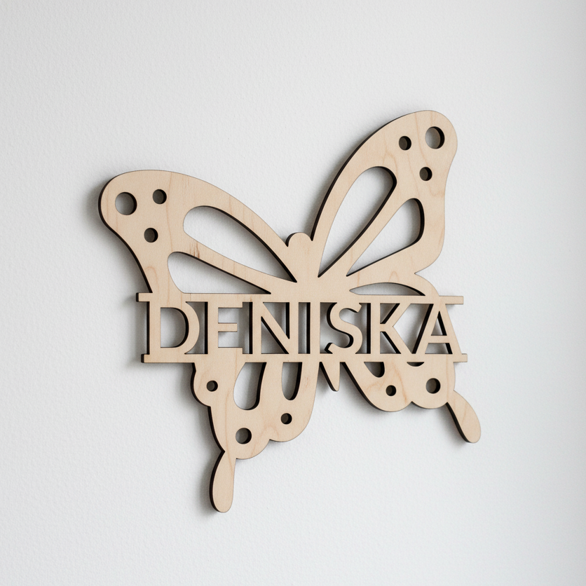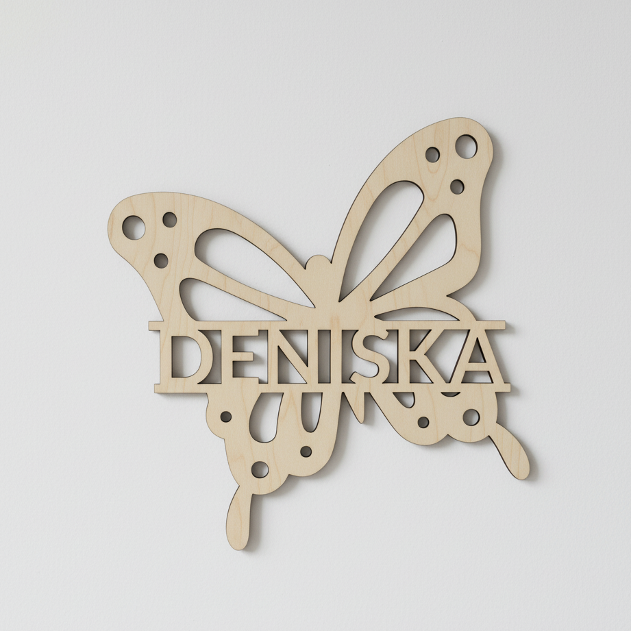 Jemná dekorace motýla se jménem, která rozzáří každý dětský pokoj.
