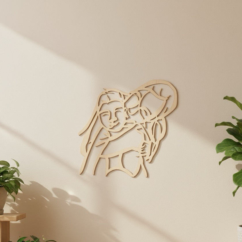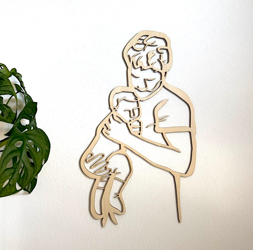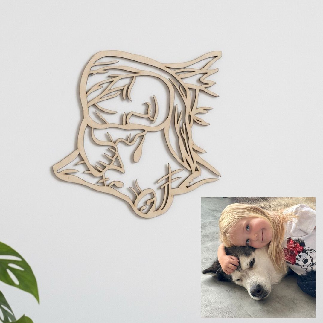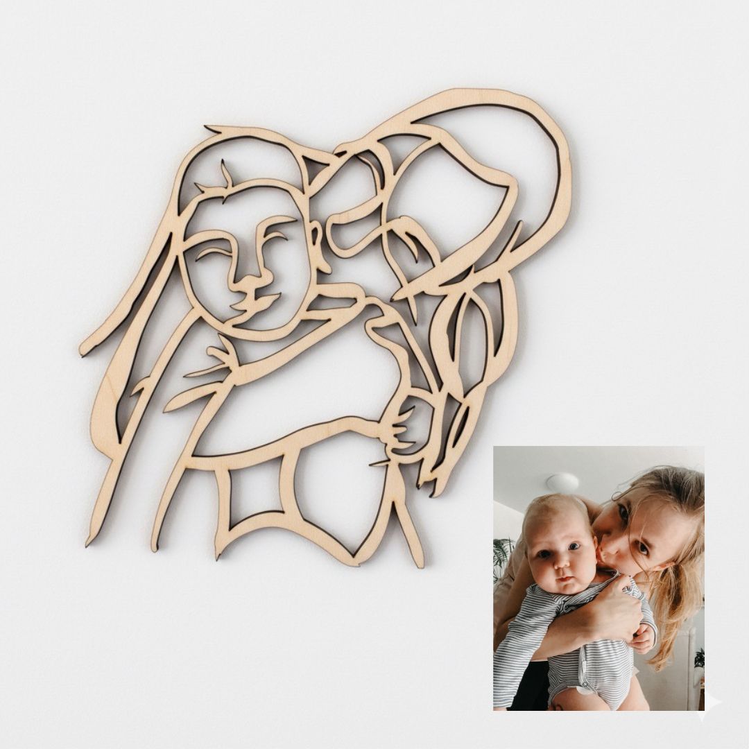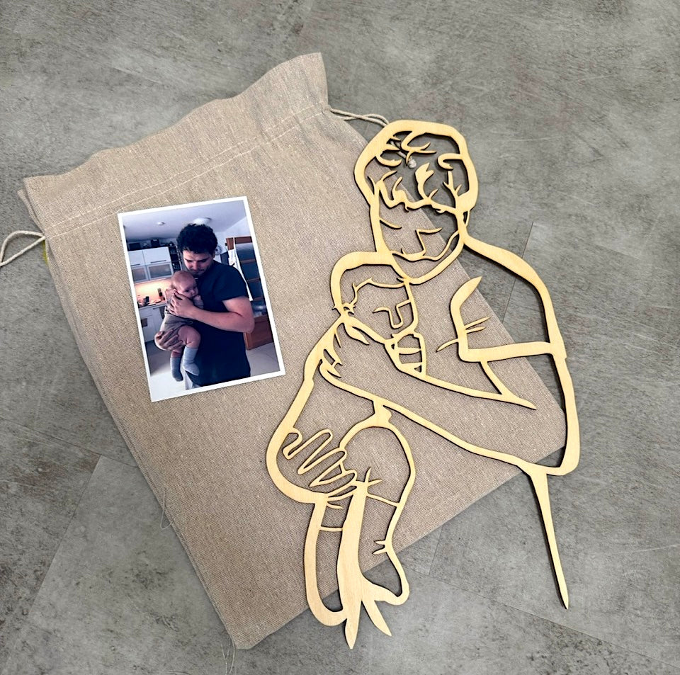 Zaslanou fotografii proměníme v minimalistický line-art výřez ze světlé březové překližky. Obrysový minimalistický portrét zachytí váš vztah, blízkost, dotek.