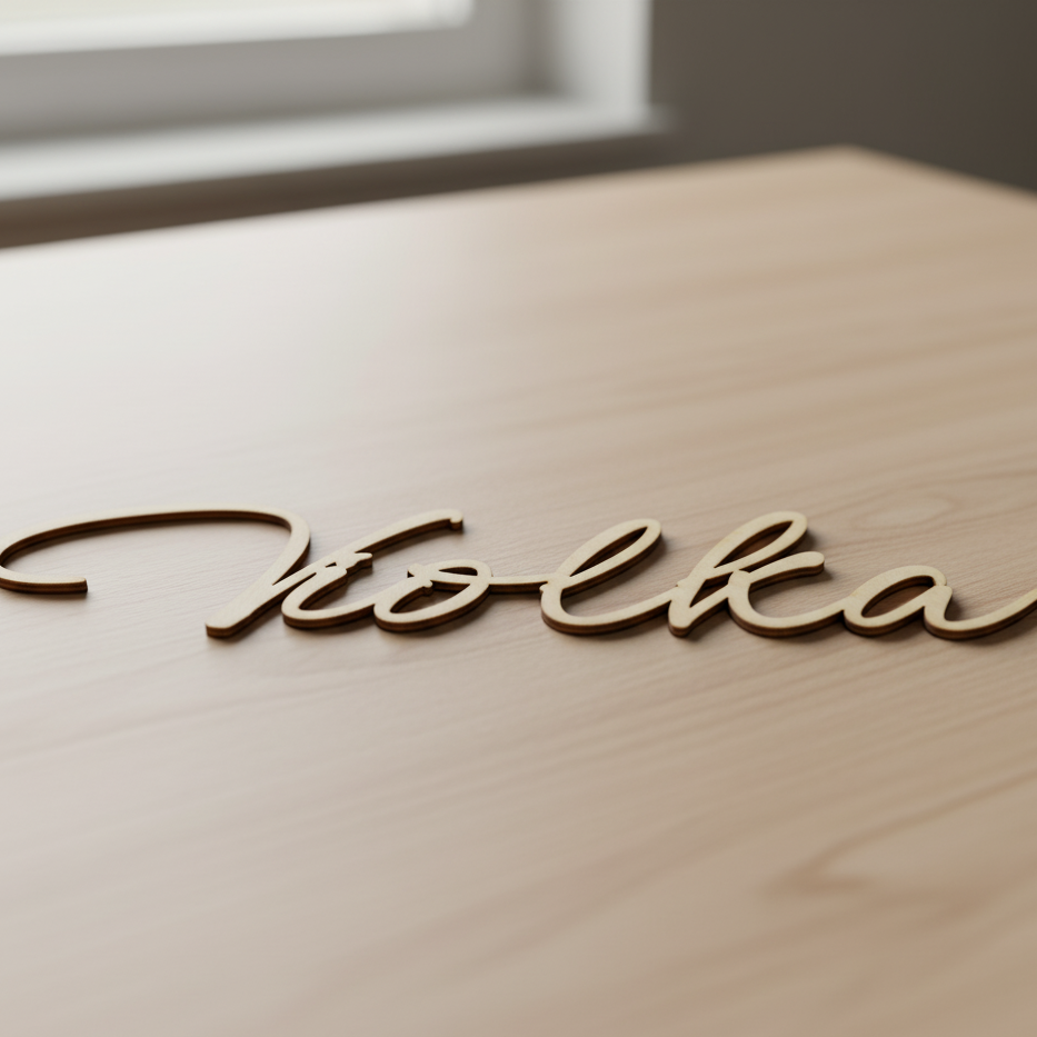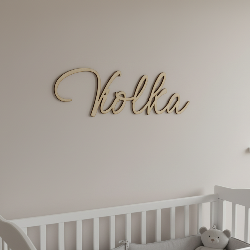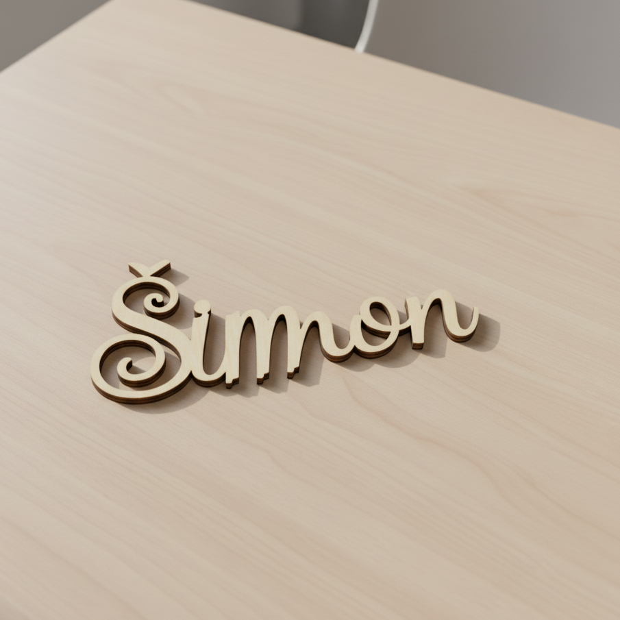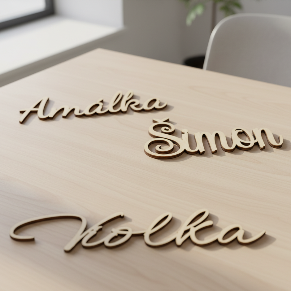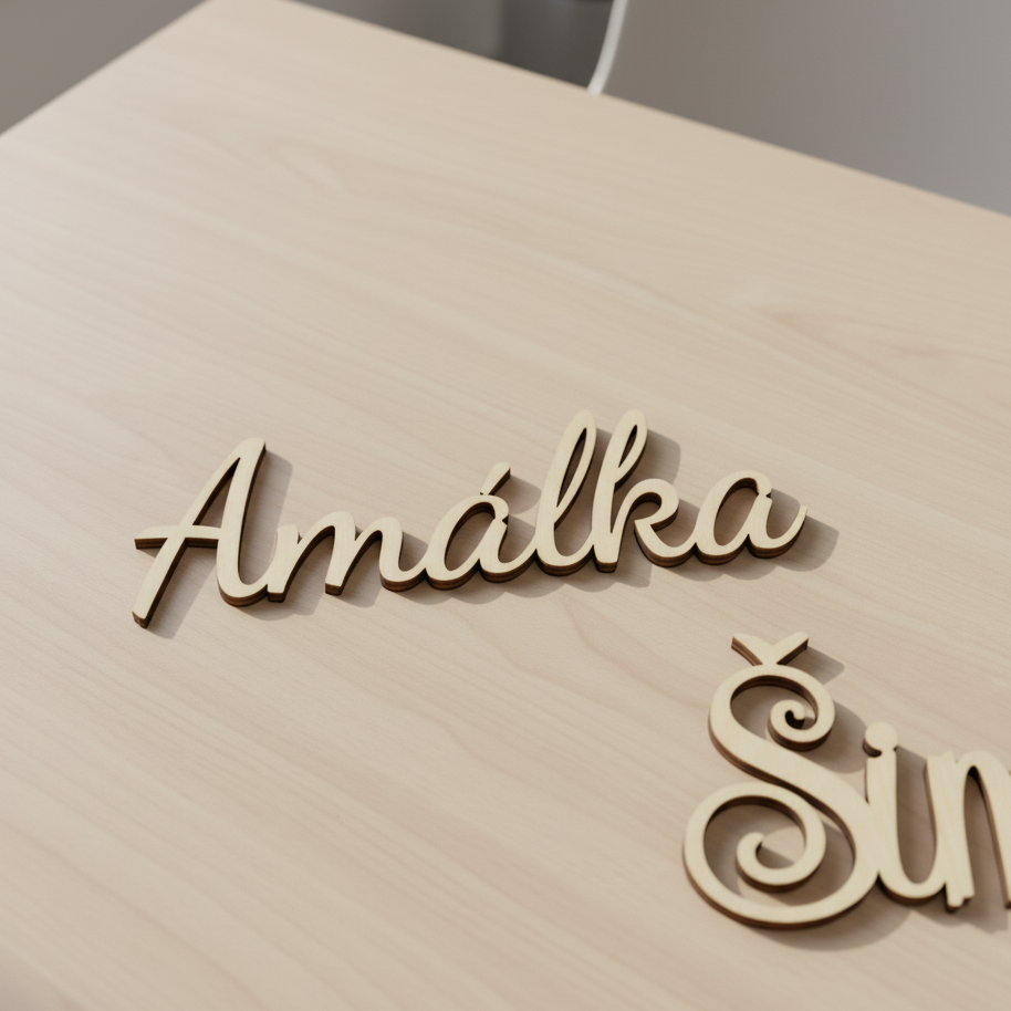 Každé jméno vyrábíme precizně z 3mm březové překližky, aby působilo lehce, ale přitom pevně drželo svůj tvar.