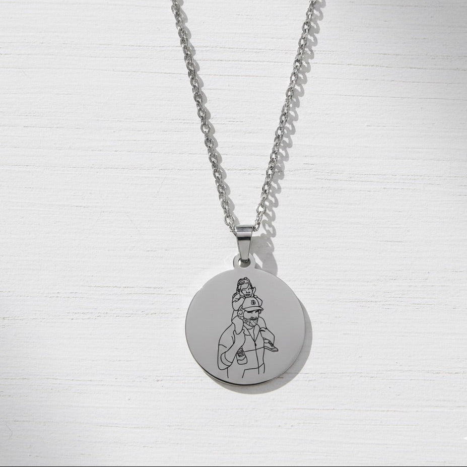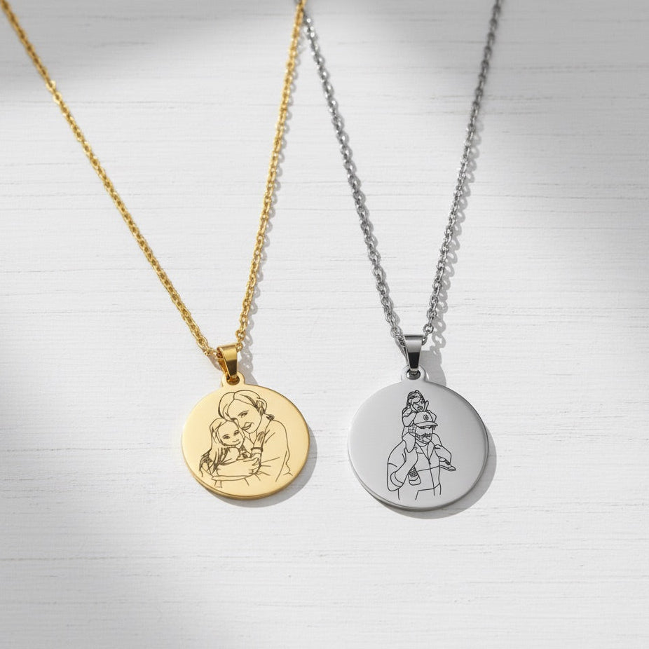 📸 Jemný medailon z chirurgické oceli s rytinou vytvořenou podle vaší fotografie.