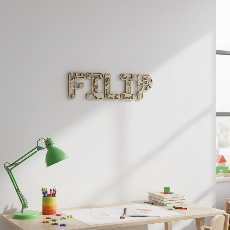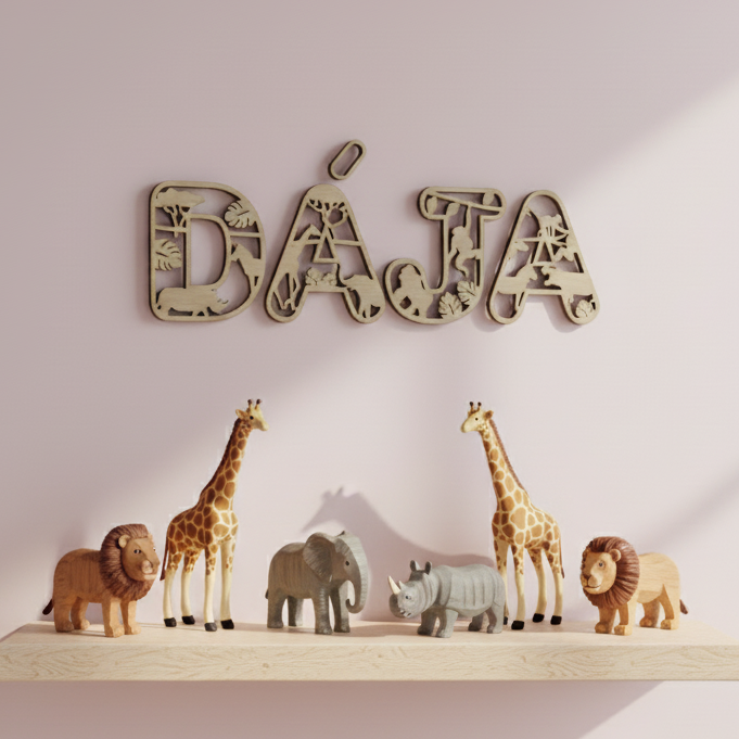 Můžete si poskládat celé jméno, přezdívku nebo oblíbené slovo, nebo si vybrat jen jedno písmeno jako iniciálu. Při objednávce více písmen vybíráme motivy tak, aby se zvířata střídala, a celý nápis působil živě a pestře.