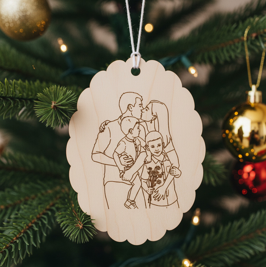 Proměňte oblíbenou fotku ve skutečný kousek domova – jemně gravírovanou ozdobu z březové překližky, která zachytí to nejdůležitější: blízkost, dotek, rodinu. 🤍